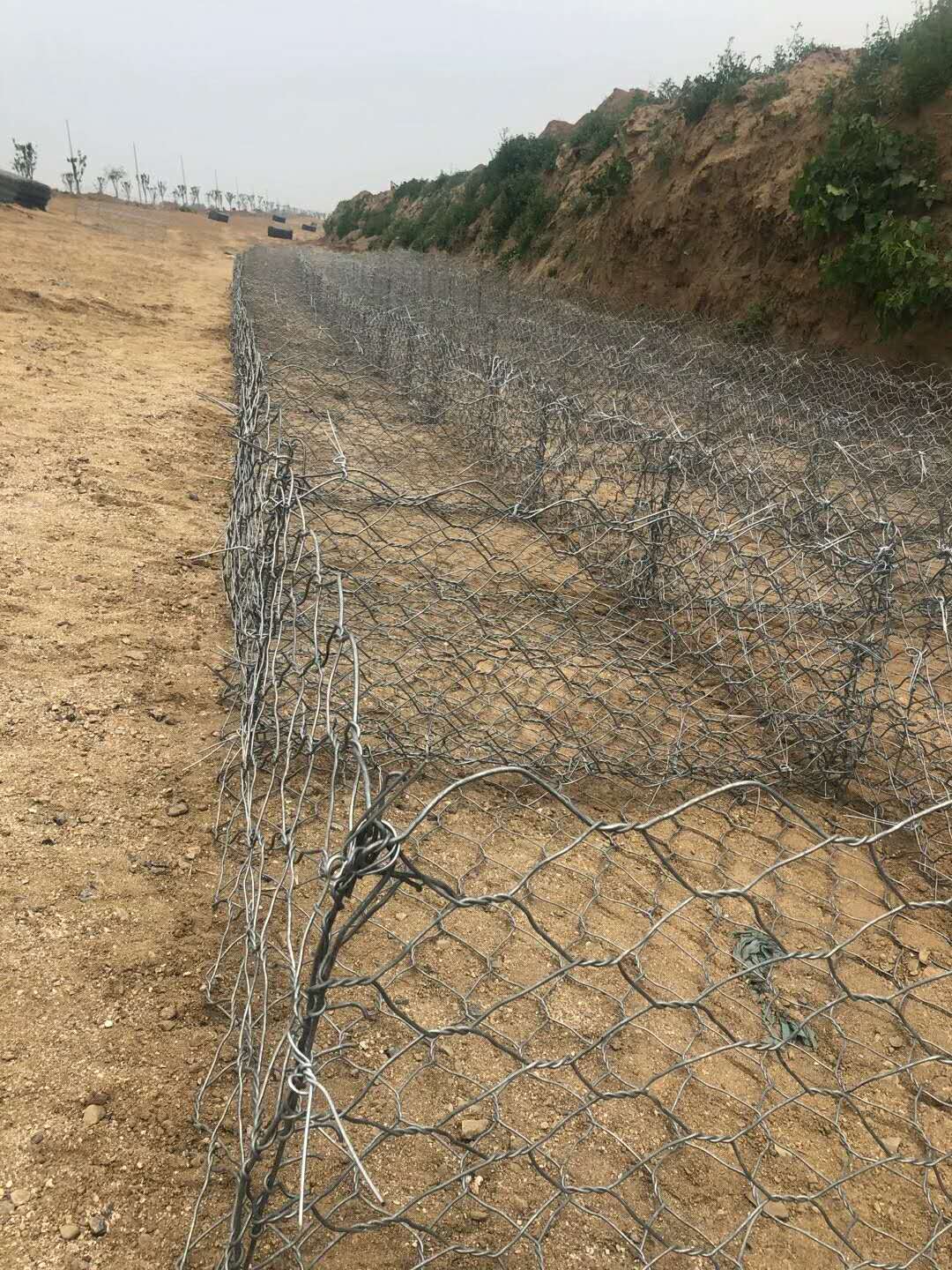 5、石籠網(wǎng)安裝前,應(yīng)適當(dāng)修整岸坡及地面,并盡可能保持岸坡原有形狀,但不應(yīng)有明顯的隆起和凹陷。