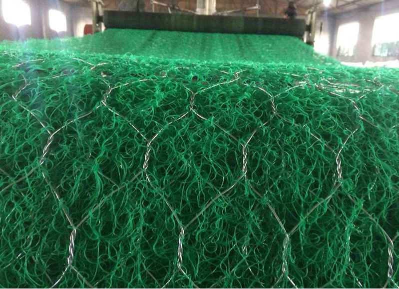 加筋麥克墊的生產(chǎn)并不是一次成型的,它屬于土工墊跟鐵絲網(wǎng)合成的一種組合體,首先生產(chǎn)鐵絲網(wǎng),高爾凡低碳鍍鋅鋼絲放到重型六角網(wǎng) 機器上編制成六角網(wǎng),然后在放到平網(wǎng)機器上把網(wǎng)整理平整,在經(jīng)過送網(wǎng)機把網(wǎng)輸送到麥克墊的合成設(shè)備上在卷起來就好了