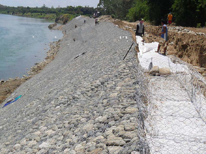 雷諾護(hù)墊是指由機(jī)編雙絞合六邊形金屬網(wǎng)面構(gòu)成的厚度遠(yuǎn)小于長度和寬度的墊形工程構(gòu)件,其中裝入塊石等填充料后連接成一體,成為主要用于水利堤防、岸坡、海曼等的防沖刷結(jié)構(gòu),具有柔性、對地基適應(yīng)性的優(yōu)點。