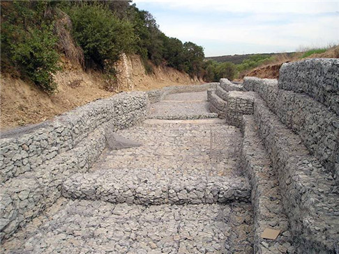 4.較簡便的施工方法:工藝可按設(shè)計意圖,工廠化生產(chǎn)制作出半成品,施工現(xiàn)場則按設(shè)計圖進(jìn)行組裝定型,再鋪設(shè)在整理好的土坡上或開挖好的基坑上,鋪成護(hù)坡或砌壘成箱籠擋土墻,灌進(jìn)填充料、加上蓋網(wǎng)即成