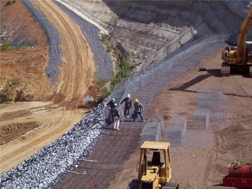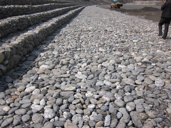 (一)格賓及雷諾護(hù)墊均是由特殊防腐處理的低碳鋼絲經(jīng)機(jī)器編織成的六邊形雙絞合鋼絲網(wǎng),在工廠(chǎng)做成符合工程要求的網(wǎng)箱結(jié)構(gòu),在施工現(xiàn)場(chǎng)用石料填充,其結(jié)構(gòu)具有柔性、透水性及整體性等特點(diǎn)。 (二)格賓及雷諾護(hù)墊內(nèi)部每間隔1米采用橫隔板隔成獨(dú)立的單元,根據(jù)施工現(xiàn)場(chǎng)情況組合使用;長(zhǎng)度、寬度、高度公差±5%;網(wǎng)孔尺寸也可根據(jù)工程現(xiàn)場(chǎng)填充石料料場(chǎng)的實(shí)際粒徑大小與廠(chǎng)家商定,但填充石料的最小粒徑不得小于150px;格賓及雷諾護(hù)墊的外型尺寸也可根據(jù)工程,我們是生產(chǎn)廠(chǎng)家,可以根據(jù)客戶(hù)需求定制。 (三)鋼絲采用熱厚鍍鋅并覆塑方式防腐處理,具體指標(biāo)見(jiàn)格賓及雷諾護(hù)墊設(shè)計(jì)參數(shù)表。 (四)力學(xué)指標(biāo):網(wǎng)面抗拉強(qiáng)度為50KN/m,鋼絲的抗張強(qiáng)度應(yīng)在350-50N/m2之間,延伸率不能低于10%,符合EN1023-3標(biāo)準(zhǔn)。 (五)翻邊要求:網(wǎng)面裁剪后末端與邊緣鋼絲的連接處是整個(gè)結(jié)構(gòu)的薄弱環(huán)節(jié),為加強(qiáng)網(wǎng)面與邊緣鋼絲的連接強(qiáng)度,需采用專(zhuān)業(yè)的翻邊機(jī)將網(wǎng)面鋼絲纏繞在邊端鋼絲上2.5圈,不能采用手工絞。 (六)絞邊要求:鋼絲必須采用與網(wǎng)面鋼絲一樣材質(zhì)的鋼絲,為保證連接強(qiáng)度需嚴(yán)格按照間隔10375px單圈-雙圈交替絞合。 (七)面網(wǎng)加強(qiáng)拉筋設(shè)置要求:為了避免面網(wǎng)受壓鼓出影響整體受力,必須在格賓及雷諾護(hù)墊的內(nèi)外兩片網(wǎng)板之間用3.2m的加強(qiáng)拉筋將內(nèi)外兩片網(wǎng)板拉緊綁扎一體。加強(qiáng)拉筋縱橫間距每625px一根,每平方米網(wǎng)板均勻布置9根。 (八)為防止風(fēng)浪或水流對(duì)岸坡地基的淘刷,應(yīng)在修整后的地基上鋪單位重200g/m2反濾無(wú)紡布,在反濾無(wú)紡布上鋪設(shè)格賓或雷諾護(hù)墊。 (九)將格賓或雷諾護(hù)墊網(wǎng)運(yùn)到施工現(xiàn)場(chǎng)后,在靠近安裝位置的平整場(chǎng)地上打開(kāi),將格賓或雷諾護(hù)墊置于平實(shí)的地面,壓實(shí)多余的折痕,應(yīng)避免損傷保護(hù)層。用綁扎鋼絲按設(shè)計(jì)要求將內(nèi)外面板、底板、隔板、端板進(jìn)行組裝成型,同時(shí)按第七條要求在內(nèi)外兩片網(wǎng)板之間安裝加強(qiáng)拉筋,以增強(qiáng)格賓或雷諾護(hù)墊的整體性和面層平整度。 (十)對(duì)相鄰格賓或雷諾護(hù)墊的上下四角用雙股組合鋼絲綁扎,四周框線(xiàn)每間隔625px綁扎一道,使相鄰格賓或雷諾護(hù)墊牢固連接共同受力。 (十一)填充石料時(shí)應(yīng)先填充一半高度(對(duì)雷諾護(hù)墊先填充一半厚度),用人工將石料擺放整齊,并用細(xì)石填縫密實(shí),再填充另一半,以保證箱體內(nèi)填充石料的密實(shí)和平整。為避免由于單邊裝填引起隔板變形,緊靠隔板兩邊的石頭必須同時(shí)進(jìn)行裝填。在斜坡上施工時(shí),應(yīng)從坡地向坡頂進(jìn)行裝填,并確保每個(gè)隔板的頂部都露出來(lái),便于封口絞合。 (十二)對(duì)裸露的填充石料,表面用人工砌壘整平,讓石料間相互咬合,填充石料頂面應(yīng)預(yù)留75px的沉降高度。石料填充完畢后,用網(wǎng)蓋將格賓或雷諾護(hù)墊加蓋,并與內(nèi)外面板、端板、隔板牢固綁扎一體,四周封口綁扎間距以最小直徑的填充石料不漏出為宜,同時(shí)綁扎好內(nèi)外面網(wǎng)之間的加強(qiáng)拉筋,使組裝成型后的格賓或雷諾護(hù)墊邊緣整齊,表面飽滿(mǎn)平整,整體綁扎牢固,相鄰聯(lián)為一體。 (十三)填充石料要求:堅(jiān)硬無(wú)風(fēng)化、不易水解、不易碎的卵石或塊石。格賓填充石料粒徑以100-200m為宜。雷諾護(hù)墊填充石料粒徑以70-100m為宜。 (十四)格賓及雷諾護(hù)墊的安裝應(yīng)在專(zhuān)業(yè)廠(chǎng)家的指導(dǎo)下進(jìn)行。