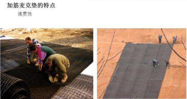3、生態(tài)性,加筋麥克墊之間充滿了空隙,有利于植物根系的發(fā)育,營(yíng)造良好的生態(tài)環(huán)境。即使不灑泥土,隨著時(shí)間的推移,填料之間的空隙也會(huì)自然地長(zhǎng)出一些草本類植物,形成自然的生態(tài)環(huán)境。