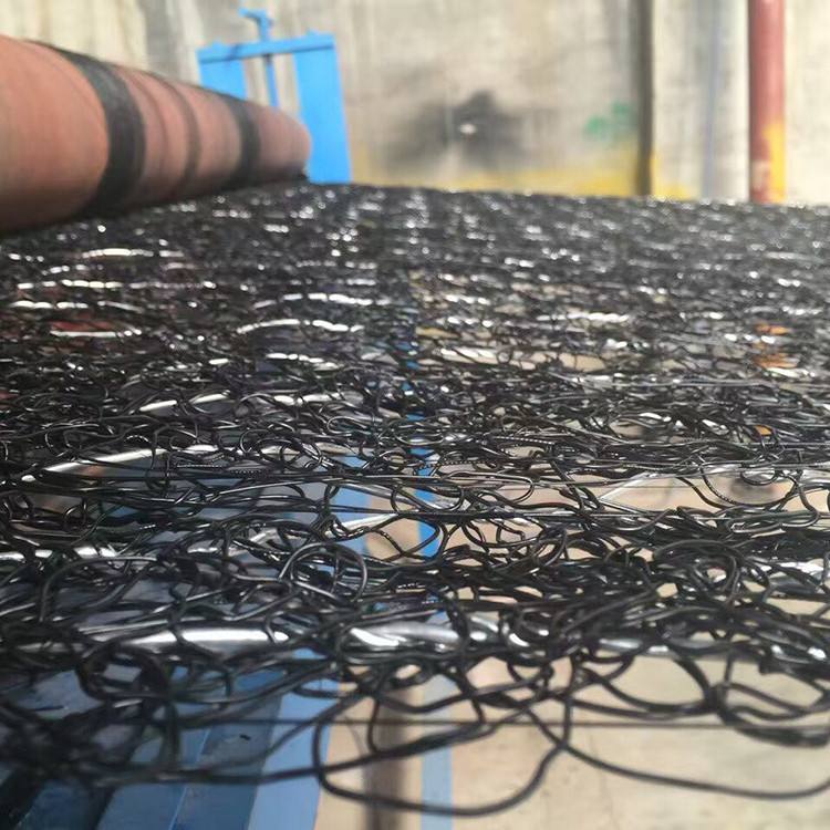 1、加筋三維植物網(wǎng)墊是聚丙烯經(jīng)過(guò)擠成單絲后無(wú)規(guī)則的疊成一定厚度并且通過(guò)熱黏結(jié)成土工網(wǎng)墊,具有開(kāi)敞式的三維空腔結(jié)構(gòu),孔隙率大于90%,同時(shí)通過(guò)專(zhuān)門(mén)的設(shè)備,將各種鍍層(鍍鋅、鍍高爾凡、鍍鋁鋅合金、PVC覆塑)的雙絞合六邊形金屬網(wǎng)復(fù)合到柔性墊中。