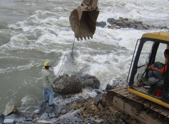 格賓網(wǎng)石籠防護(hù)技術(shù)是指由專用機(jī)械將涂塑或不涂塑(PVC樹脂)的熱鍍鋅鋁低碳鋼絲編織成格賓網(wǎng)片,然后將其裁 剪、拼裝成符合設(shè)計(jì)要求的格賓網(wǎng)箱籠,用塊石等填滿后用于堤防、河岸、路基的防護(hù)。格賓網(wǎng)石籠防護(hù)屬于柔性防護(hù)工程,有利于保護(hù)河道、堤防岸坡的安全穩(wěn) 定,可實(shí)現(xiàn)水土自然交換,增強(qiáng)水體自凈能力,同時(shí)又可以實(shí)現(xiàn)坡面植被綠化,使工程建筑與生態(tài)環(huán)境保護(hù)達(dá)到有機(jī)結(jié)合。