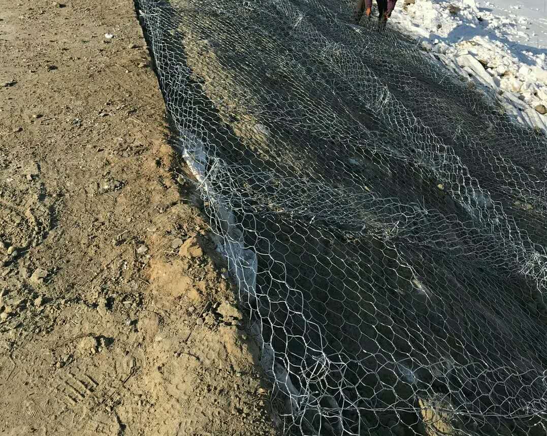 雷諾護(hù)墊是指由機(jī)編雙絞合六邊形金屬網(wǎng)面構(gòu)成的厚度遠(yuǎn)小于長度和寬度的墊形工程構(gòu)件,其中裝入塊石等填充料后連接成一體,成為主要用于水利堤防、岸坡、海曼等的防沖刷結(jié)構(gòu),具有柔性、對(duì)地基適應(yīng)性的優(yōu)點(diǎn)。