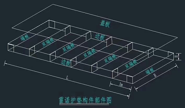 雷諾護(hù)墊是厚度在0.15-0.3m(含0.3m)的網(wǎng)箱結(jié)構(gòu)。