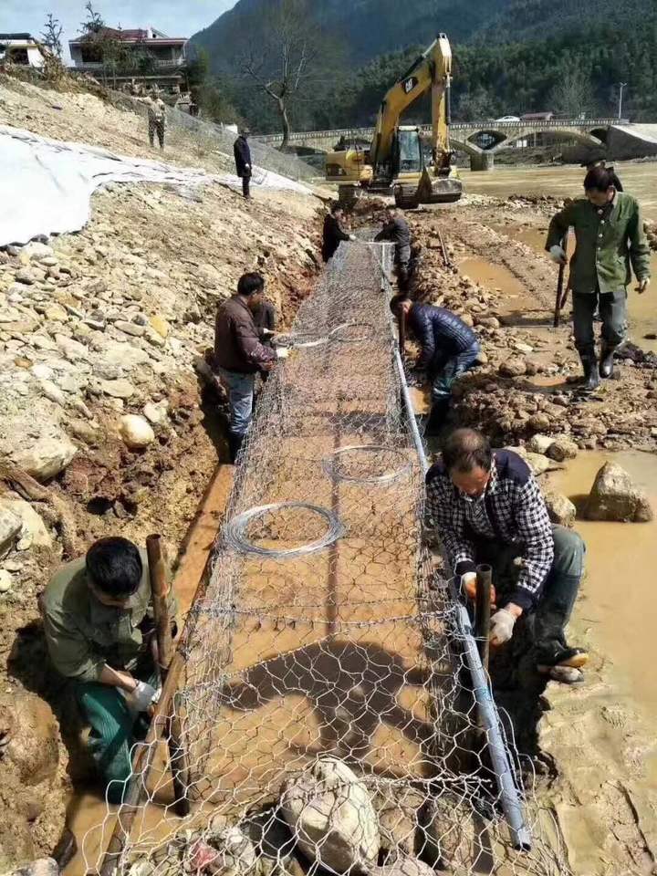 格賓網(wǎng)石籠防護(hù)技術(shù)是指由專(zhuān)用機(jī)械將涂塑或不涂塑(PVC樹(shù)脂)的熱鍍鋅鋁低碳鋼絲編織成格賓網(wǎng)片,然后將其裁 剪、拼裝成符合設(shè)計(jì)要求的格賓網(wǎng)箱籠,用塊石等填滿(mǎn)后用于堤防、河岸、路基的防護(hù)。格賓網(wǎng)石籠防護(hù)屬于柔性防護(hù)工程,有利于保護(hù)河道、堤防岸坡的安全穩(wěn) 定,可實(shí)現(xiàn)水土自然交換,增強(qiáng)水體自?xún)裟芰?,同時(shí)又可以實(shí)現(xiàn)坡面植被綠化,使工程建筑與生態(tài)環(huán)境保護(hù)達(dá)到有機(jī)結(jié)合。