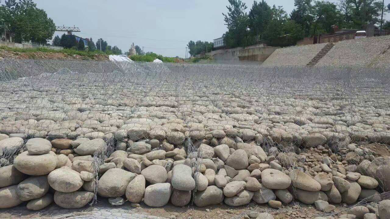 雷諾護(hù)墊采用以機(jī)編六邊形低碳鋼絲網(wǎng)面制成的網(wǎng)墊,在網(wǎng)墊內(nèi)填充合乎一定要求的石頭共同構(gòu)成的防護(hù)結(jié)構(gòu)。     一般的雷諾護(hù)墊的規(guī)格為0.15m-0.3m厚,2m寬,6m長(zhǎng)。 雷諾護(hù)墊由隔板分成若干單元格,為了加強(qiáng)雷諾護(hù)墊結(jié)構(gòu)的強(qiáng)度,所有的面板邊端均采用直徑更大的鋼絲。