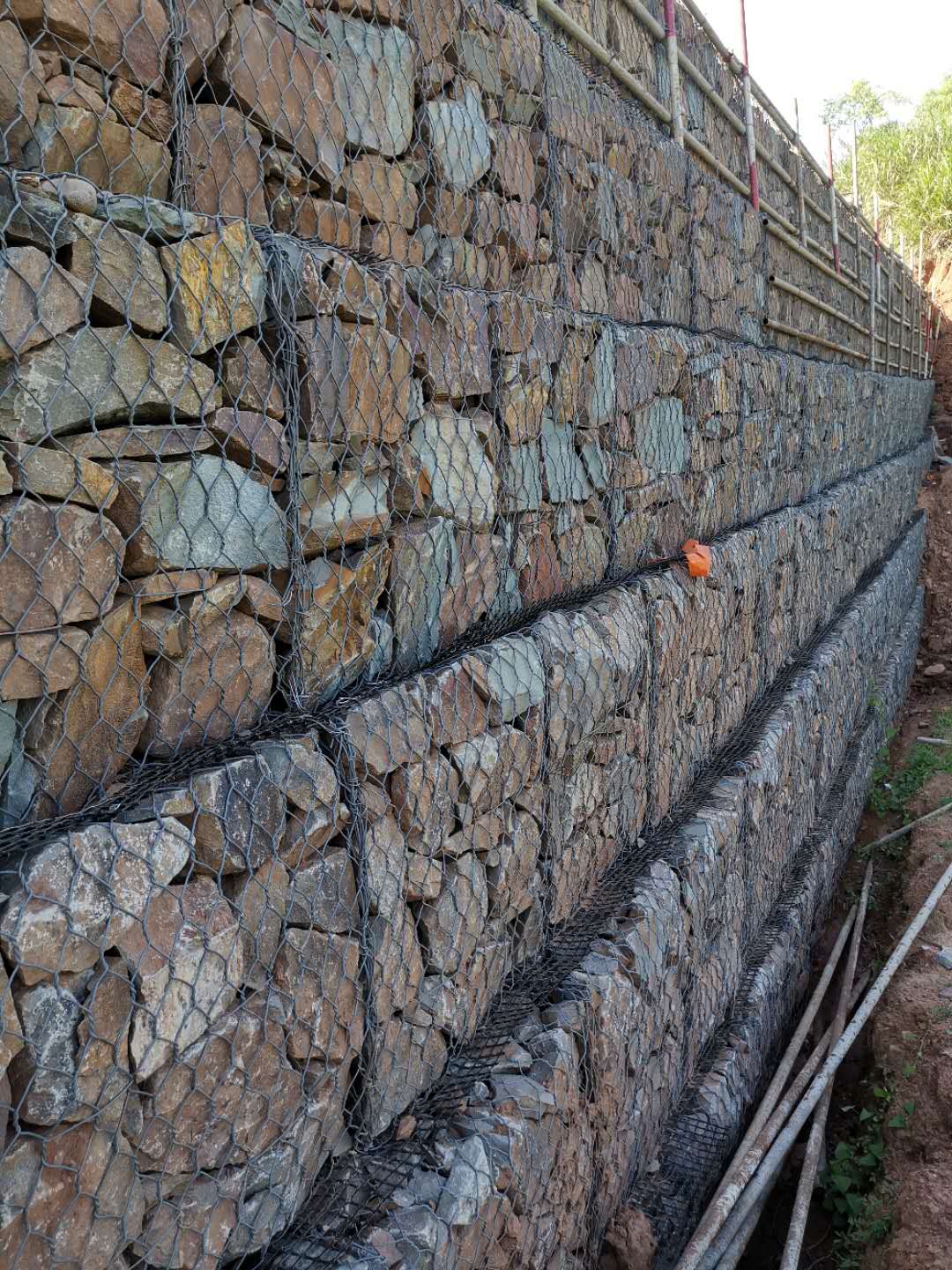 格賓石籠網是由高抗腐蝕、高強度、具有延展性的低碳鋼絲或者包覆PVC的以上鋼絲使用機械編織而成,根據ASTM A 975和EN10223標準,所使用的低碳鋼絲直徑根據工程設計要求而不同。一般介于2.0-4.0mm之間,鋼絲的抗拉強度不少于38kg/m2,金屬鍍層重量一般高于245g/m2石籠網片的邊緣線直徑一般要大于網線直徑。其雙線絞合部分的長度不得小于50mm.以保證絞合部分鋼絲的金屬鍍層和PVC鍍層不受破壞。產品用途:該結構可用于邊坡支護、基坑支護、山體巖面掛網噴漿、邊坡 植生(綠化)、鐵路高速公路隔離護攔網,它還能制成箱籠、網墊,用于江河、堤壩及海塘的防沖刷保護以及水庫、河流截流用網箱。格賓石籠運輸特點: