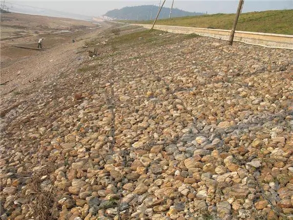 固濱籠(格賓石籠)是由蜂巢形格網(wǎng)片,將特種鋼絲鍍膜后,由專用機(jī)械編織成的雙絞、蜂巢形網(wǎng)片組裝成箱籠,根據(jù)工程設(shè)計(jì)要求裁剪、制作、組裝成箱籠并裝入塊石等填充料后連接成一體的結(jié)構(gòu),是用做堤身、堤基及路基等防護(hù)工程的新型結(jié)構(gòu)。岸結(jié)構(gòu)形式可以分為擋墻、護(hù)坡、護(hù)底、護(hù)腳、水下拋石籠等。習(xí)慣上又將護(hù)坡、護(hù)底工程上常用的較薄的一種箱籠稱格賓網(wǎng)墊(高度一般在0.17—40cm)。擋墻、拋石籠常用的較厚的一種稱為格賓網(wǎng)箱(一般高度在50cm以上)。治理山坡、綠化植被及水土保持常用的則稱為格賓植被掛網(wǎng)。